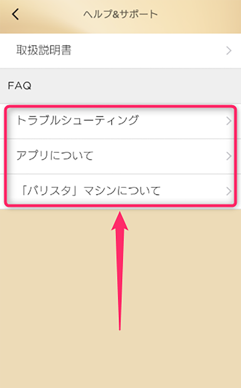 バリスタと連携できない、コーヒーが抽出されないなど、困ったときの解決策をサポートしてくれます。