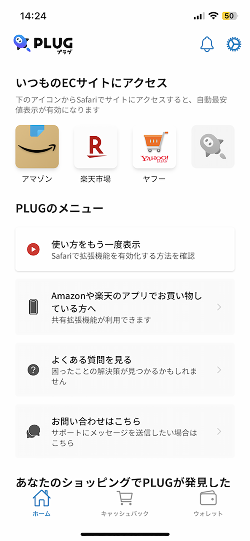 PLUGは、いつも利用しているネットショッピングで最安値を自動で知らせてくれるアプリです。SafariでAmazon、楽天市場、Yahoo!ショッピング、PayPayモールやほかのネットショップなどを比較してもっとも安いサイトを教えてくれます。