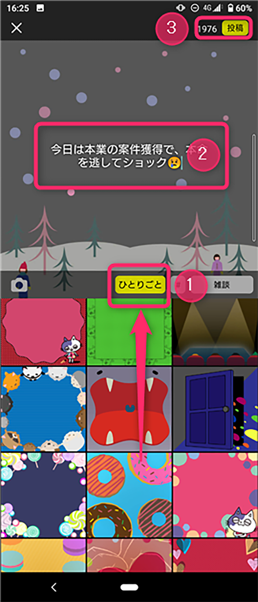 「投稿」ボタンをタップすると、タイムラインにひとりごとが反映されます。