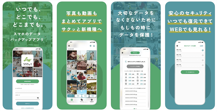 『リクウェイ』なら、今使っているスマホが古くても問題なし。自動バックアップで大事なデータをしっかり守りたいなら、まずは下記あらアプリをダウンロードして試してみてください!