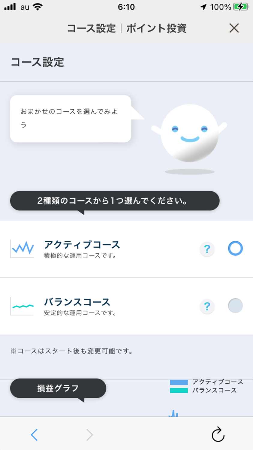 アクティブコースは積極的に増やしたい方向けです。どちらもポイントで運用できるため、損失リスクが低く気軽に挑戦できます。