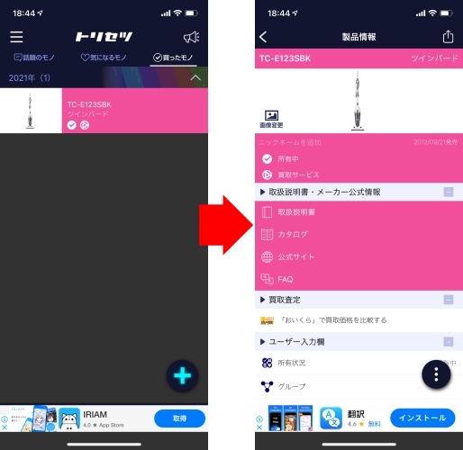 アプリの名前通り、家電製品の取扱説明書を一括管理できるのが「トリセツ」の特徴です。購入した家電製品をアプリに登録しておけば、いつでも取扱説明書を確認できます。